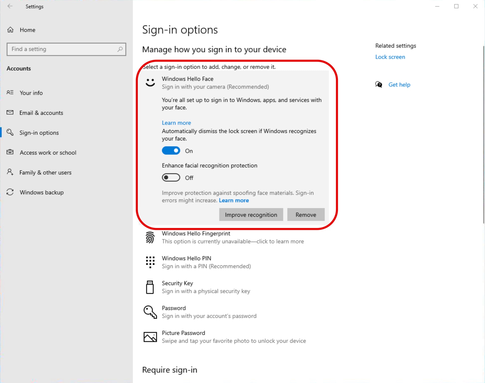 After adding biometric recognition in the Control Panel, the setup is complete!